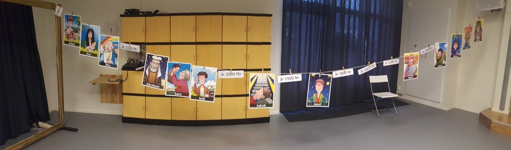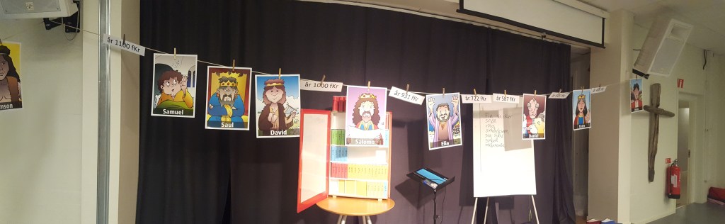 Igår var jag i Kungsportskyrkan i Huskvarna. Där vandrade jag genom Gamla Testamentet tillsammans med 60 barn i åldrarna 7-12 år. Under tre 45-minuters pass tog vi oss från skapelsen, via Abraham och hans familj till Mose, Josua, domarna, kungarna och ända till Ester. Cirka 1700 på 135 minuter. Så roligt. Så utmanande.